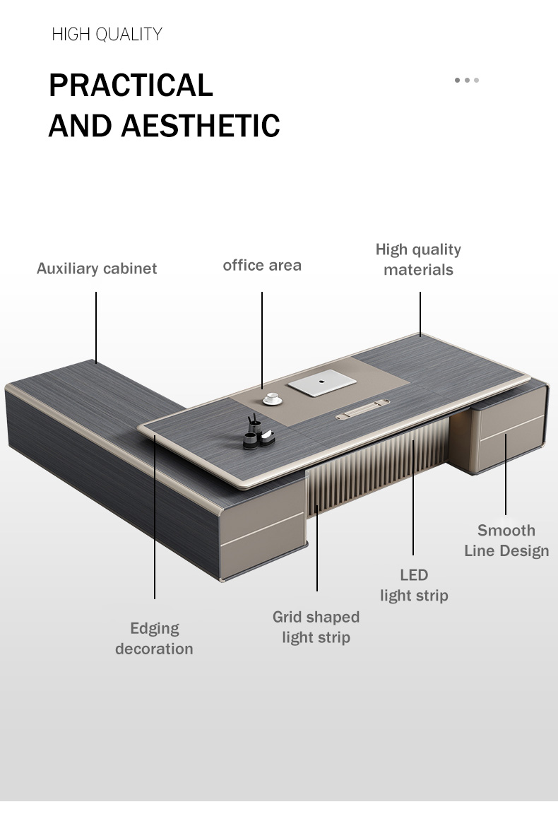 New Modern Office Furniture Latest Executive Office Desk luxury office furniture Designs Boss CEO Desk L Shaped with light